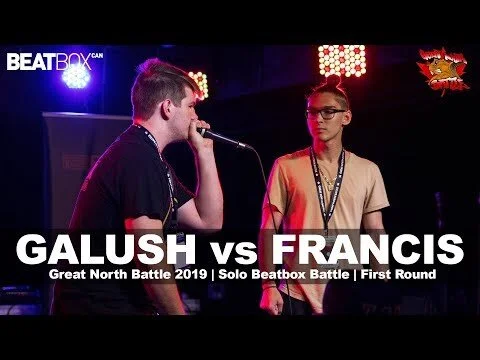 CHAMPIONSHIPS 2019 2018 2017 2016 2015 2014 2013 2012 2011 2010 GREAT NORTH BATTLE GNB 2019 GNB 2018 GNB 2017 GNB 2016 GNB 2015 GNB 2014 More Beatbox 2022 | All From The Mouth Beatbox Battle 2018 | Proper Steel City 2017 | Unity Beatbox Battle 2016 | Unity Beatbox Battle 2016 | Montreal 7 To Smoke 2015 | Unity 2 vs 2 2015 | Ramped Up Beatbox Battle 2012 | Toronto Beatbox Battle